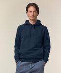 The Sounder side-pocket hoodie/sweatshirt. Medium unisex fit. Set-in sleeves. Self-fabric lined hood. Flat drawcords in matching body colour. Embroidered buttonhole eyelets. 1x1 rib at sleeves cuffs and bottom hem. Slanted side seam with pockets. Three-needle flatlock stitches on all seams. Herringbone tape at inside back neck seam and inside of zip. Self-fabric half moon at back neck.